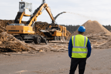 Horké plyny ze zařízení na výrobu biomasy se používají k sušení dřevních vláken, která vznikají ve výrobním procesu. Proud odpadního vzduchu ze sušárny se čistí pomocí biokrbů a mokrého elektrostatického odlučovače. Vzniklá voda se pak biologicky čistí v aerační nádrži a vrací se zpět do výrobního procesu. V provzdušňovací nádrži žijí dobré 3 miliardy termofilních bakterií, které jsou schopny rozkládat látky oddělené z proudu odpadního vzduchu. Kromě toho byl instalován systém zpětného získávání tepla, který teplo z provzdušňovací nádrže vrací zpět do výrobního procesu jako energii. Tím se ročně ušetří přibližně 3 300 tun CO₂.