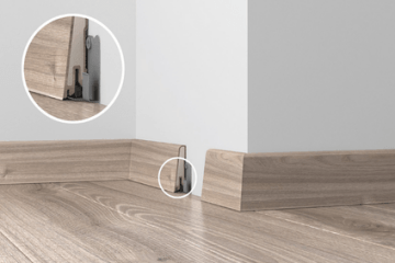 Lišta z vypěňovaného polyblendu. Nově integrovaný měkký břit nabízí čisté zakončení u podlahy, chrání např. při vytírání proti pronikání vlhkosti a je tak neomezeně vhodný do vlhkých prostor. Rozměr 60x17x2500 mm.